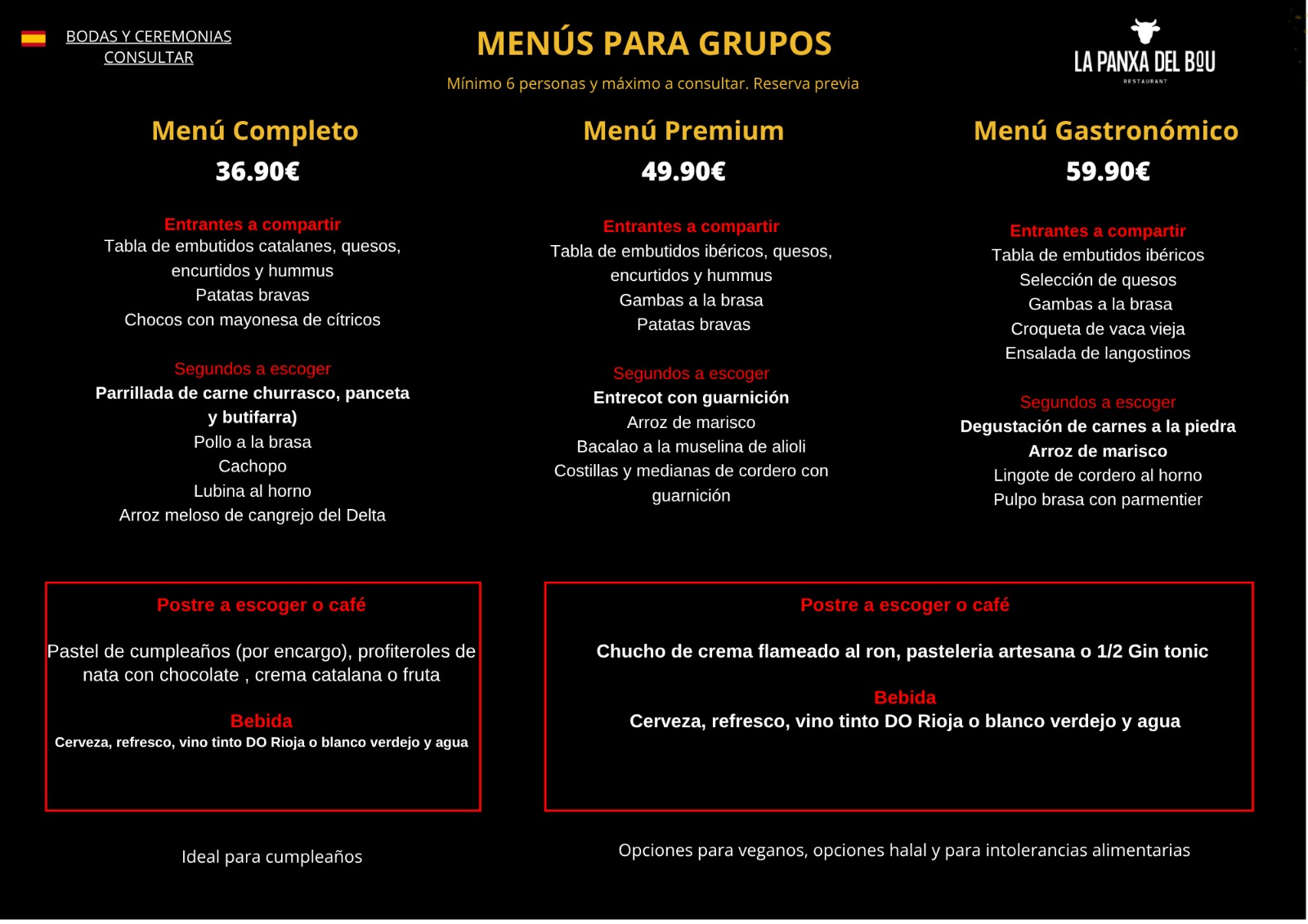 Menú de grupo, perfecto para cumpleaños, eventos, bodas y empresas.